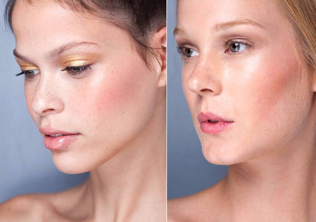O estilo de maquiagem anos 80 com as maçãs do rosto mais marcadas está de volta. O efeito dramático pode ser conseguido com a mistura o pó bronzant lado a lado do clássico blush cor de rosa, que apareceu em vários desfiles (2nd Floor, Acquastudio e Andrea Marques) e o resultado é claro: o rosto fica levemente mais afinado e com aspecto de saúde. Primeiro aplique o pó bronzeador logo abaixo do osso das maçãs do rosto e espalhe bem, para não pesar. Em seguida, passe o blush rosa na parte mais saliente das maças do rosto. Misture ambos os tons e pronto. Puro Glam!