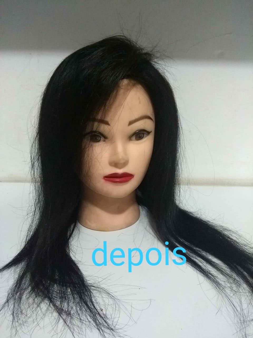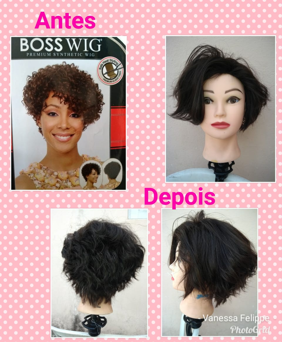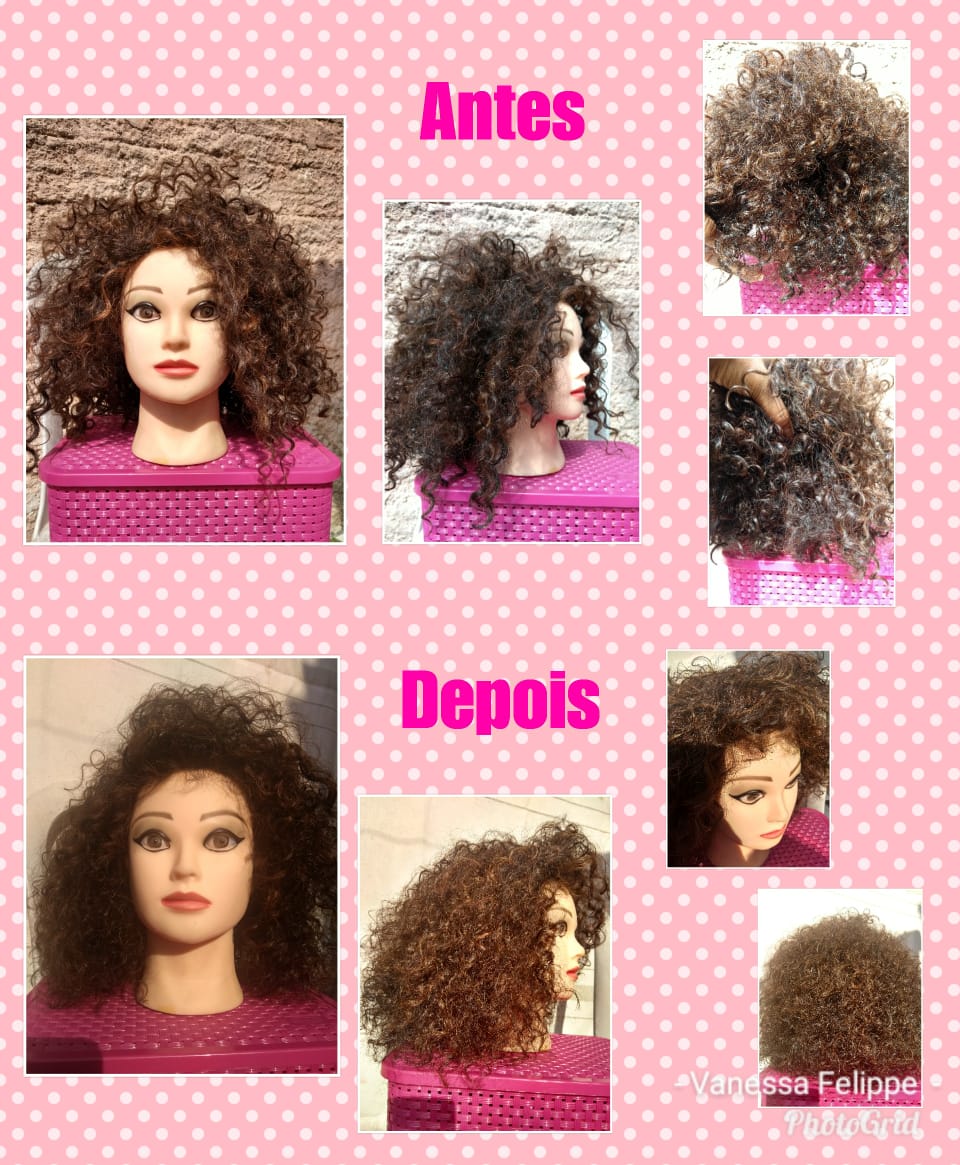 Com isso pode testar em cada uma delas, técnicas diferentes para cuidar e manter. Até que um dia uma delas rasgou, e teve que costurar. A outra lace que chegou não veio com o corte que mostrada na foto, então ela aprendeu a fazer o corte (que difere do cabelo humano) quando se trata de cabelo sintético.