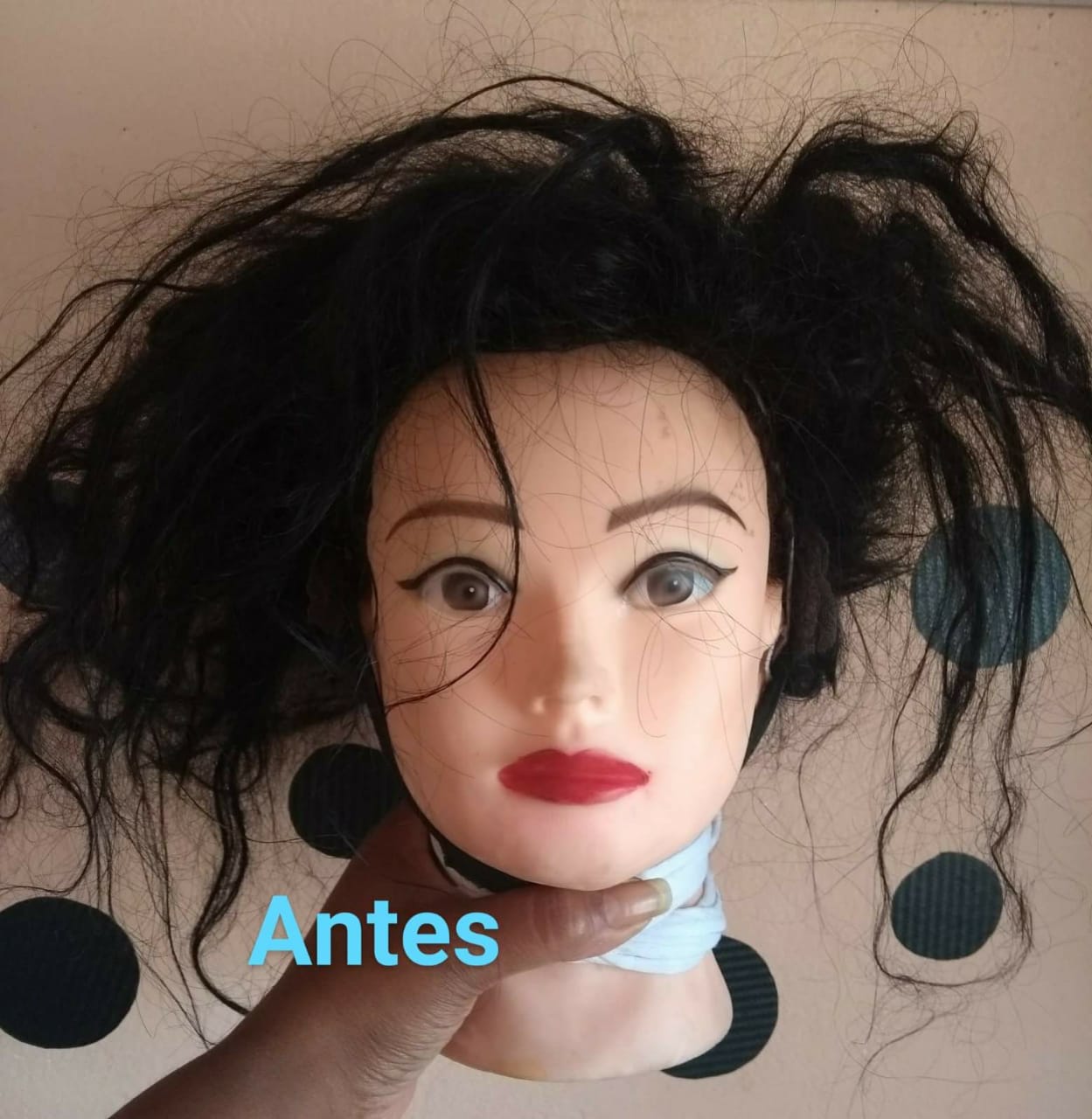 A outra lace começou a apresentar pontas ásperas, então ela testou o alisamento, ai todas ficaram ressecadas, então aprendeu a hidratar e foi assim, restaurando e modificando as caps, alisando e enrolando as fibras, cortando e modificando as caps, que ela começou a se especializar em manutenção e restauro de laces.