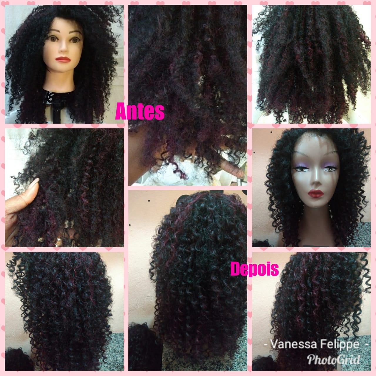 O nome era antigo das perucas era Wig (peruca em inglês) e se tornou Lace Front Wig, Full lace, Lace 360, todas com muita naturalidade. Foi quando ela retirou o entrelace (que a deixou com falhas no cabelo) e adquiriu sua primeira lace front wig sintética de fibra futura cacheada.