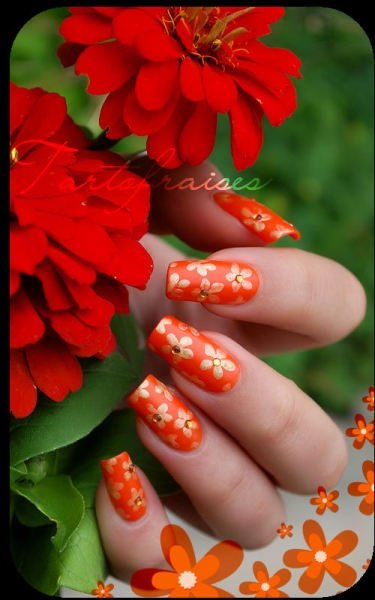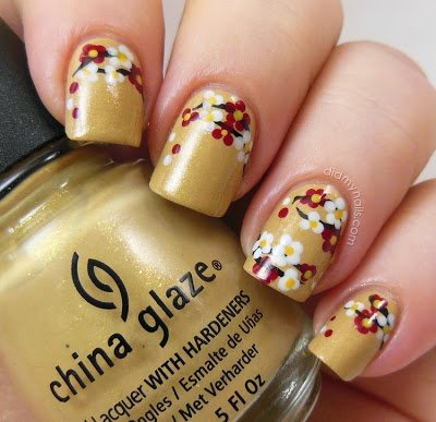 O maneira mais simples que encontrei para fazer é decorando as flores com um palito, como li no site clube das unhas, veja: